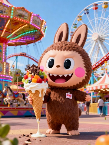 3D卡通风格,拟人化可爱兔子手捧胡萝卜,置身花海,清新自然,充满童趣。