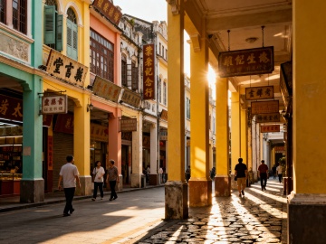 用现代材料打造台湾传统风格餐饮街区街景图,要新不要破旧的,要有台湾传统元素,一二层楼的建筑