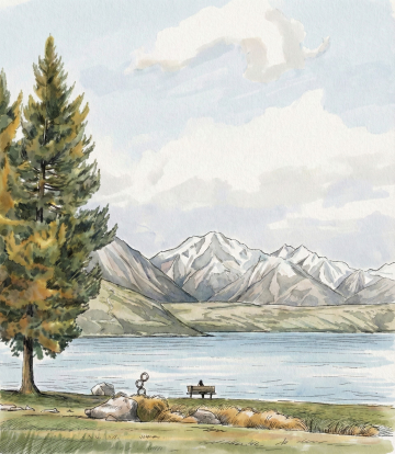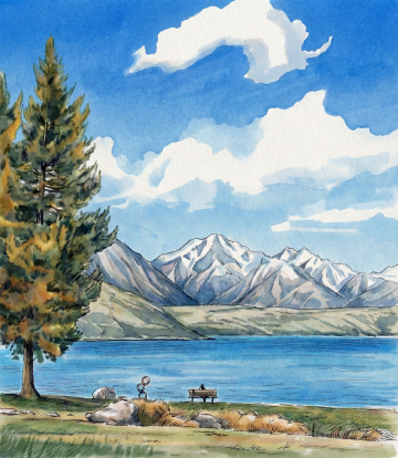 一套四张的水彩风格自然元素插画,每张插画均采用单一纯色背景,保持统一的水彩绘画技法——包括透明晕染的色彩过渡、湿润的边缘效果、轻柔的笔触质感和朦胧的光影氛围,画面整体色彩各异但风格高度统一。每张插画包含不同类目的自然主题元素:第一张为深绿色系的松树群,树干挺拔,枝叶层次分明,底部有浅色草地晕染;第二张为蓝色系的远山与云朵组合,山峰轮廓柔和,云朵边缘模糊,呈现远近层次感;第三张为橙黄色系的落叶树与地面落叶,树冠呈蓬松的圆形,叶片细节用水彩点染表现;第四张为紫色系的花卉丛生,花朵形态简约而富有韵律,花瓣边缘有自然的色彩渐变。所有元素均以垂直构图居中排布,保持与松树群插画一致的构图比重和留白比例,整套插画规整排列成2x2的网格布局,形成视觉协调的系列素材集合。