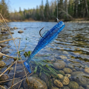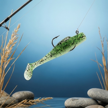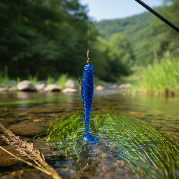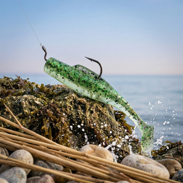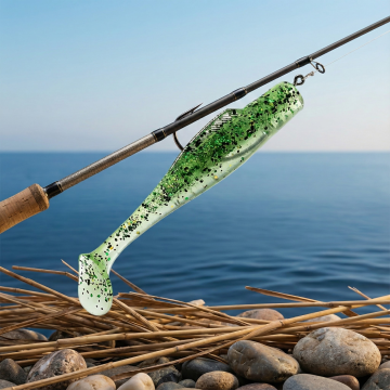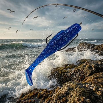 甩鱼竿钩着鱼饵 面对海边展示
