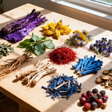 阳光下,造型各异的彩色水晶簇与原石散落在深蓝色天鹅绒布上,水晶棱角分明,折射出耀眼光芒,呈现出透明、紫色、绿色、橙色等多种色彩,表面光滑有光泽,背景为纯净的深蓝色,水晶底部有细微的阴影,整体画面色彩鲜明,光影效果突出,具有高清晰度和细腻质感。