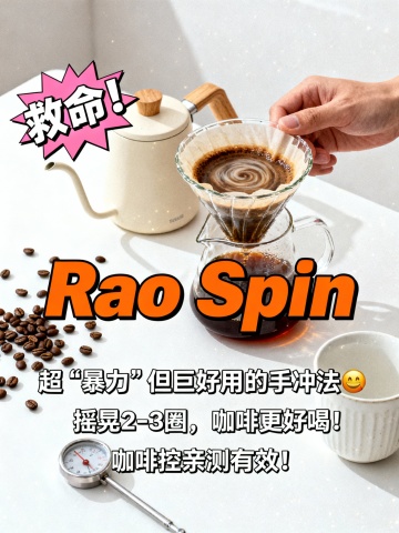 “Rao Spin”粗暴冲煮法,摇晃就能更好喝? 救命!发现一个超“暴力”但巨好用的手冲方法——Rao Spin!据说摇晃几下,咖啡就能更好喝?本咖啡控亲测有效! 用于小红书