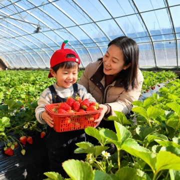 设计一张采摘草莓的温馨图片,草莓属于基质盆栽培