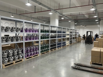 高写实主义摄影风格,展示一个不同样式的现代化大型仓库内部场景。仓库内光线明亮,顶部安装有规则排列的白色LED照明灯具,光线均匀地洒在整个空间。仓库采用钢结构屋顶,黑色金属横梁清晰可见。画面中整齐排列着多组不同样式的仓储货架,部分为蓝色金属材质的高层货架,上面堆满了封装好的纸箱;地面上则有大量不同堆叠方式的棕色纸箱,部分放置在蓝色塑料托盘上。整体色调以工业灰、金属蓝和纸箱的棕色为主,色彩真实自然,光影过渡柔和,具有明显的空间纵深感和立体感。仓库环境整洁有序,体现出现代物流仓储的高效与规范,无任何文字、LOGO及二维码元素。
