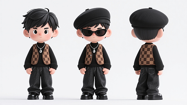 软3D风卡通男孩,可爱感十足,时尚穿搭,多角度展示。详情