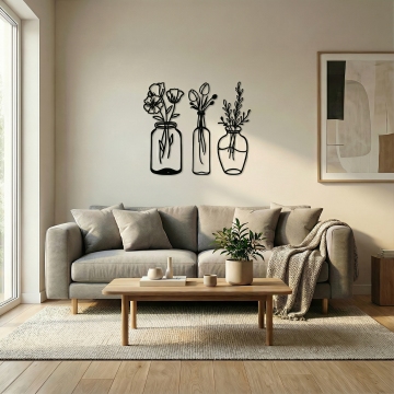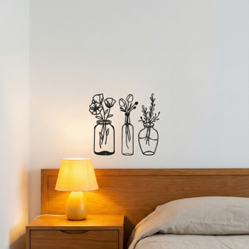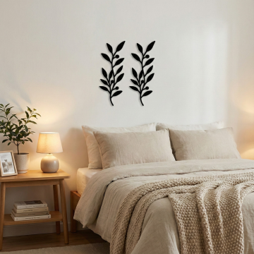 极简风格卧室室内设计,以浅米色墙面为背景,搭配原木色实木床架,铺着浅灰色亚麻质感床单,床头摆放两个浅米色方形靠枕和两个浅灰色长条形枕,床尾随意搭着一条米白色针织毯。床的左侧是原木色床头柜,上面放置一个白色陶瓷小花瓶,插着几根干枝,旁边有一个白色小茶杯和托盘。床头柜上方墙面挂着一幅极简风格装饰画,画框为原木色,画面是三束黑色线条勾勒的麦穗图案。床的右侧是一盏白色金属落地灯,灯罩为米白色布艺材质。床前浅色木地板上铺设一块米白色长方形棉麻地毯,地毯上放着一个圆形编织篮,篮子里有一本翻开的书。整体色调以米色、浅灰、原木色为主,光线柔和,营造出宁静、舒适、简洁的氛围,空间布局对称平衡,线条干净利落,无多余装饰,体现极致的简约美学。