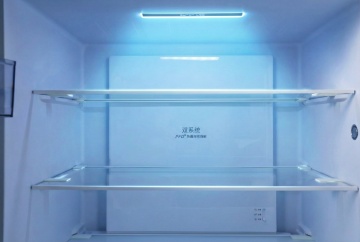 未来感与科技感交融的3D工业风厨房,重拟物金属质感冰箱居中,冷光线条勾勒空间,展现智能家电的极致美学。