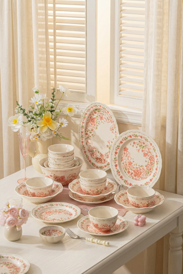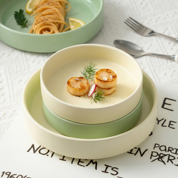 严格保持上传的陶瓷餐具的大小、位置、比例、角度、透视和结构完全不变, 不得重新设计产品,不得拉伸压缩,不得移动位置, 仅去除白色背景并将产品真实融合到场景中。 在此基础上,生成一张高分辨率的温馨生活美学风格的高清商业产品摄影,采用平视视角,主体聚焦的错落构图。画面核心为三只大小不一的浅灰白色陶瓷盘,置于浅原木色纹理桌面之上;桌面左侧设带竖纹的米白色哑光陶瓷花瓶,内插干花;左下角是亮黄色新鲜柠檬,置于卡其格纹棉麻餐布上;桌面右侧是带竖纹的米白色小花盆,内植浅绿多肉植物;背景为浅米色肌理墙面,带有细微凹凸纹理。陶瓷盘呈现细腻哑光釉面质感,边缘饰棕金色自然晕染金边;光线为柔和侧光,营造自然明暗过渡与浅淡阴影,光线呈现出柔和的边缘晕影(暗角)效果:画面中心区域光线明亮均匀,能清晰展现餐具的釉面质感;光线向画面四周自然、平缓地衰减,边缘形成轻微的暗调过渡(而非生硬的深色边界),既通过光影层次聚拢视觉焦点,突出餐具主体,整体配色以米白、浅灰、原木色为基底,搭配金黄、亮黄、浅绿等柔和暖色调,还原真实细腻的材质肌理,呈现舒适雅致的生活场景氛围。