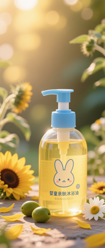 扁平风与轻拟物结合,黄色瓶身搭配可爱小鸭图案,营造柔和舒适感,卡通风格传递童趣与温馨,适合儿童节主题。