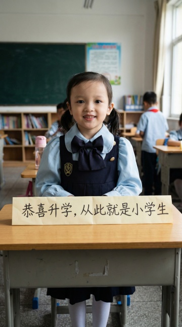 一个穿着白色短袖校服(袖口有蓝色条纹)、系着鲜艳红领巾、搭配深蓝色运动短裤(侧边有蓝色线条)的亚洲小男孩,站在校园走廊的阳光下,面带灿烂真诚的笑容,正标准地举右手敬礼。背景是浅黄色和白色相间的教学楼,走廊有白色栏杆和灰色地面,光线明亮柔和,整体画面清晰自然,充满积极向上的校园氛围和童真感,写实摄影风格,色彩明快,对焦准确,人物表情生动,展现出小学生的朝气与尊敬。