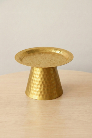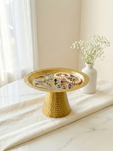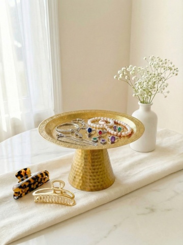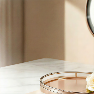 一张极简风格的产品展示图,主体为一件造型简约优雅的圆形台面家具(或类似产品),台面材质改为光滑细腻的哑光白色陶瓷,边缘呈现柔和的弧形过渡,底部搭配纤细的黄铜金属支架,支架设计为交叉几何造型,整体线条流畅现代。背景替换为纯净的浅米色,光线从左上方45度角柔和照射,在产品表面形成自然的高光和细腻的阴影,台面中央有轻微的反光效果,凸显材质的温润质感与高级感,整个画面构图采用经典的三分法,产品位于画面中央偏下位置,底部接触深色沉稳的地面,营造出宁静、精致且具有现代设计感的氛围。