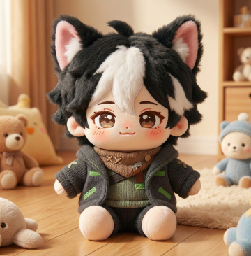 第一次生成的时候不是坐姿,而且把男娃变成了萌妹,为了还原角色,第二次提示词就强调了性别、动作,以及关键的爪印,非常之萌啊!