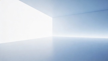 极简主义风格的白色空旷空间,纯净的白色主色调,顶部天窗投射下明亮的自然光,在地面和墙面形成清晰的光影线条,光滑的白色地面反射光线,营造出明亮、通透、宁静的氛围,写实风格,空间宽敞,没有多余装饰,光线柔和而富有层次感,整体呈现出简洁、现代、高级的设计感。