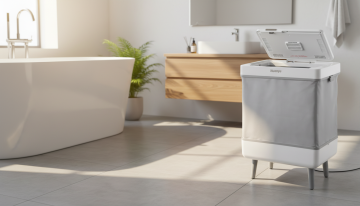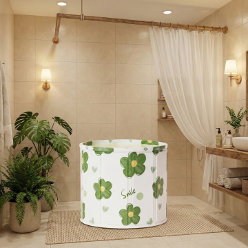 帮我把背景换成浴室 浴桶放在地上 浴桶不变,场景温馨自然。
