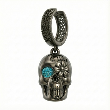 完全参考图片,生成一对参考图一样的925银耳环,枪把手镶嵌蓝绿绿松石碎
