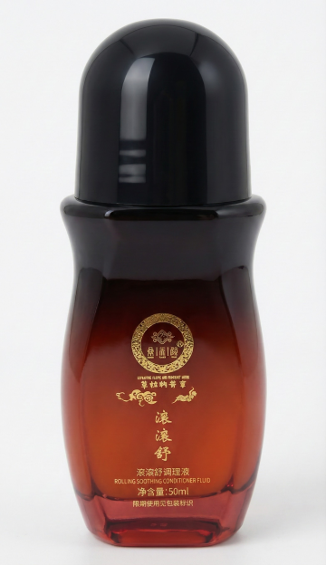 鎏金风与玻璃风交融,金属瓶盖折射柔和光影,干花飘浮于琥珀色背景,营造奢华优雅的唯美感,重拟物手法强化质感与实景感。