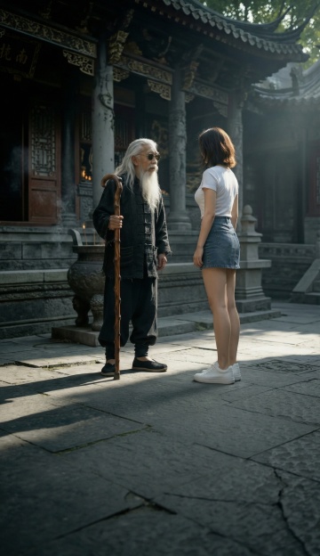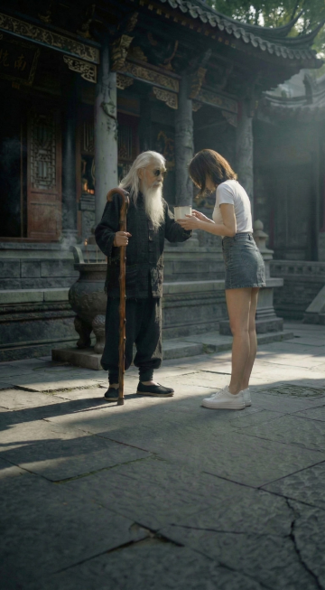 清新中式实景,少女白裙轻舞,阳光洒落古巷,尽显灵动之美。
