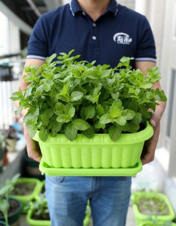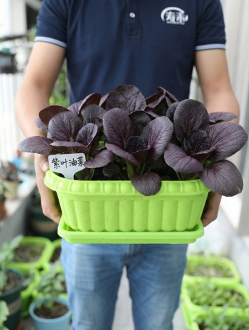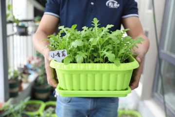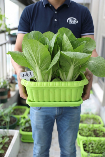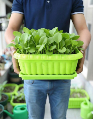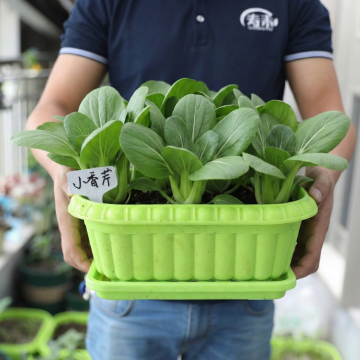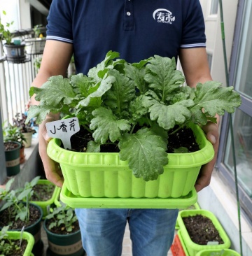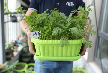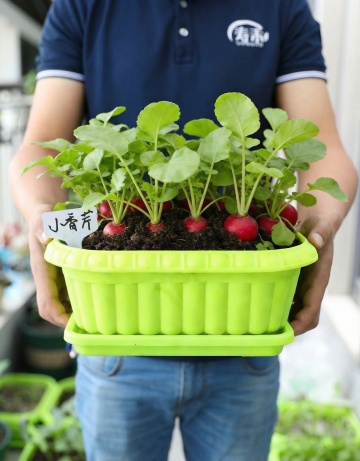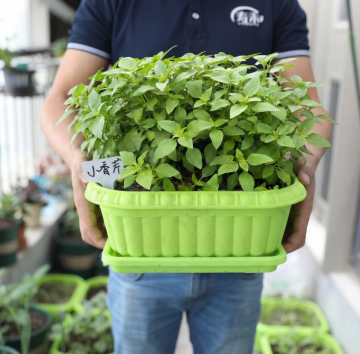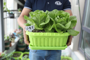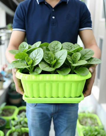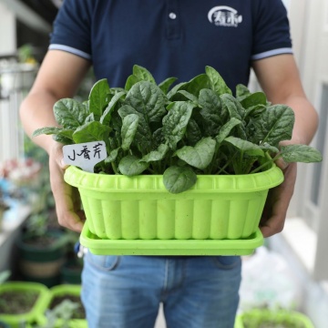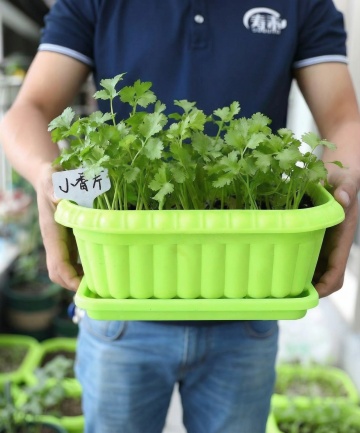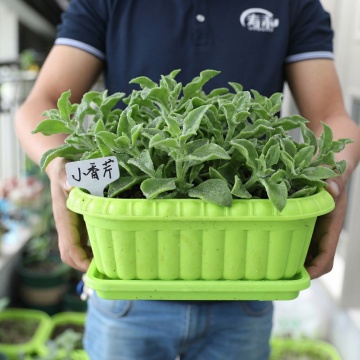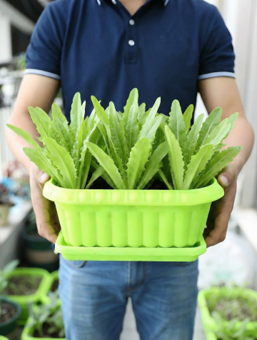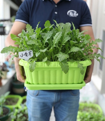 将第一张图片中盆内的芹菜替换成第二张图相同形态的。自然生长的,茂盛的生菜,保持其他元素不变,确保细节清晰、纹理逼真。