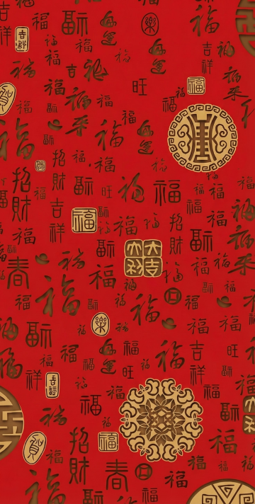 国潮风工笔金鱼跃于“福财”大字间,鎏金浮雕质感,红底祥云牡丹环绕,喜庆中式年味浓郁。