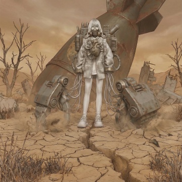少女加个防毒面具,面具不要盖住眼睛跟额头,面具与图片整体风格保持一致,生成3张