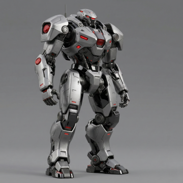未来感十足的3D机械人,融合科技与工业设计,重拟物风格展现金属质感,细节精密,充满现代科技魅力。
