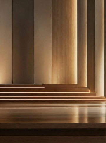 极简奢华黑金背景,深邃哑光黑色基调,顶部中央投射一道明亮锐利的金色聚光灯束,光束在光滑黑色地面形成清晰倒影,两侧垂落深灰近黑的垂坠感幕布,底部地面泛着淡淡金色光晕,整体营造出神秘、庄重、高级的舞台氛围感,光影对比强烈,金属质感光泽细腻,空间层次分明,暗部细节丰富,高光柔和不刺眼,具有强烈的视觉冲击力和高端设计感。