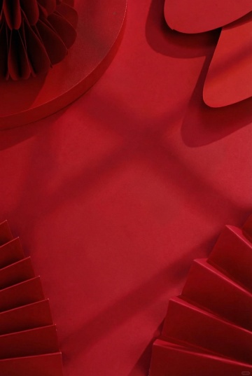 具有极简现代风格的红色背景设计,画面底部和右下角有多个半开的红色折扇元素,扇面呈现出规则的放射状条纹纹理,表面有细腻的光泽感和轻微的光影渐变效果,整体色调统一为不同深浅的红色系,营造出简洁、大气且富有层次感的视觉氛围,无任何文字和装饰元素。