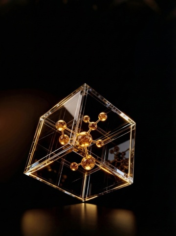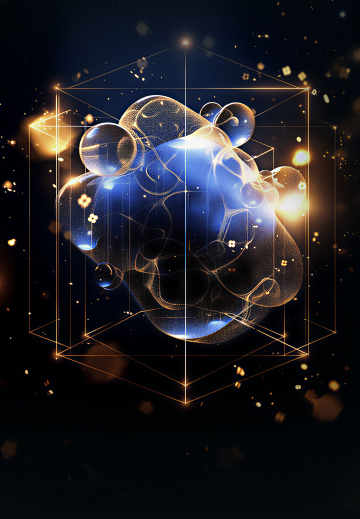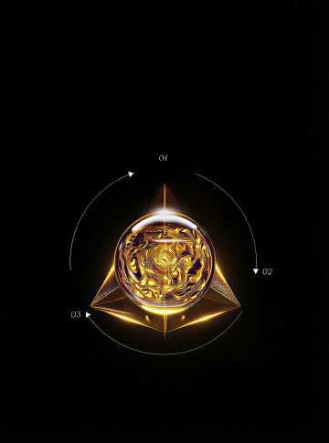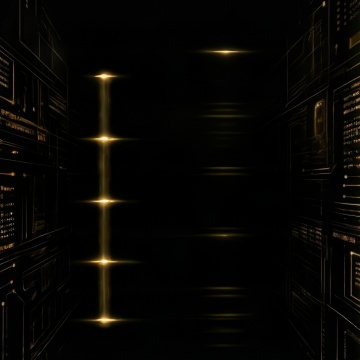 深邃的黑色背景,中央区域有一个明亮的金色光点作为光源,向四周散发柔和的光芒。画面中分布着许多金色的立体几何图形,这些图形呈现出不同的角度和大小,有的向上延伸,有的向两侧展开,形成一种空间感和层次感。金色的线条勾勒出几何图形的轮廓,边缘光滑且具有金属光泽。背景中还点缀着许多细小的金色光斑,如同星尘般散布在黑色的空间中,营造出一种华丽而神秘的氛围。整体画面色彩对比强烈,金色的元素在黑色的背景上显得格外耀眼,给人一种高端、大气的视觉感受。