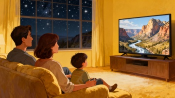 图书馆的亲子阅读角,母亲和孩子一起翻阅《地球脉动》画册,旁边平板电脑播放着相关纪录片片段,阳光透过窗户洒落,风格是法式插画风格,比例是9:16