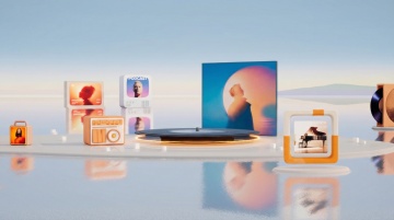 梦幻软3D风,霓虹灯色彩斑斓,音乐符号飘动,吉他演奏如梦似幻。