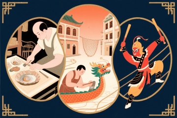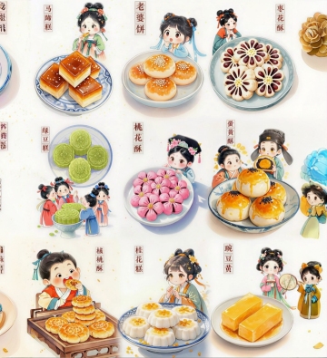 【中国传统美食系列素材集合】纯色背景,扁平化设计风格,整体采用高饱和度暖色调(红色、橙色、黄色为主),画面中包含多种中式菜肴,有炖品、炒菜、点心、汤羹等,各类菜品用不同形状和颜色的餐具盛放,餐具设计简约现代,所有元素规整排布,形成有序的视觉节奏,无文字信息,适合作为餐饮相关的系列素材使用。