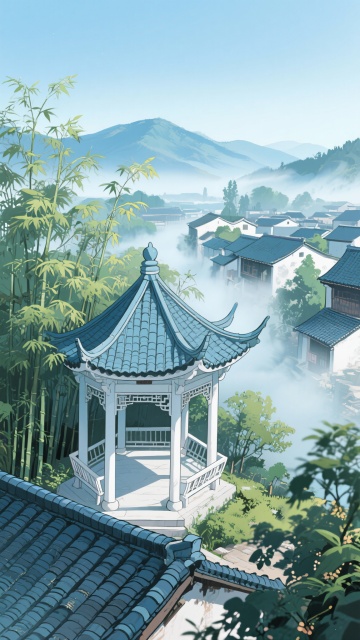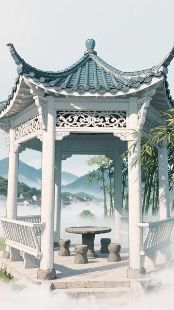 古风,绿色,庭院亭子,不要人,二次元,细节丰富,生成10张
