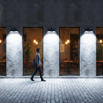 超写实摄影风格,深色背景,暖色调低光照环境,柔和的橙黄色灯泡悬挂于金属支架上,灯光在粗糙的石墙和木质桌面上投下温暖的光斑与长阴影,前景为纹理清晰的深色木质桌面,背景模糊营造出神秘而宁静的氛围,整体画面具有电影感的景深效果和细腻的材质表现。