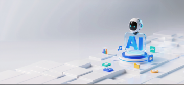 3D立体风格的AI主题插画,以蓝色为主色调,搭配白色和绿色的渐变光影效果,画面中央是由几何块面堆叠而成的立体“AI”字母,字母边缘有发光的绿色线条勾勒,底部是带有网格纹理的透明蓝色平台,周围环绕着悬浮的白色几何碎片和线条,整体呈现出科技感、未来感和数字化的氛围,背景为简洁的白色,光线从上方照射,形成柔和的阴影和高光,营造出轻盈、通透的视觉效果。