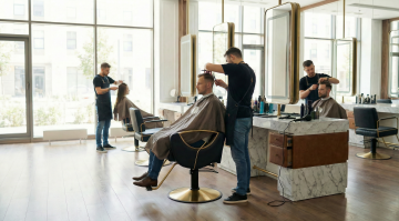 帮我生成一张美容师戴着白色丁腈手套为顾客纹眉的图片