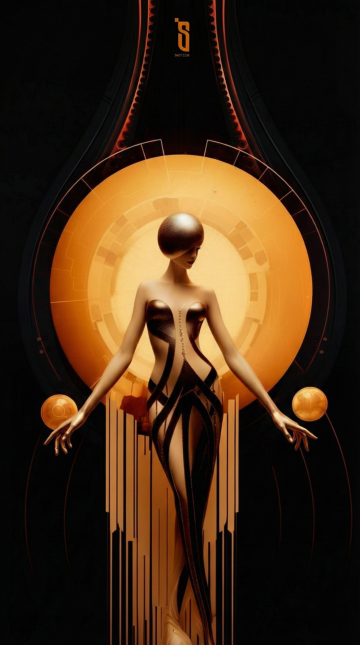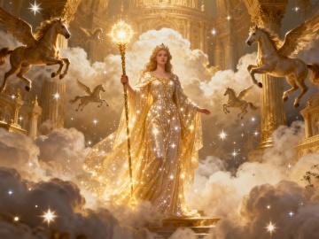 Celestial light entity with opalescent pearl-like skin (faint rainbow iridescence), intricate glowing bronze geometric patterns (hexagons, spirals) wrapping the torso; luminous eyes like glowing moonstones, form partially obscured by swirling cosmic fog; flowing gown of sheer gold and pale blue (translucent, with subtle star embroidery), trailing stardust particles; background of deep space with a swirling spiral nebula, radiating golden halos of light, faint crystal clusters glowing softly; symbolist digital painting, ethereal sacred energy, high contrast between light and dark, hyper-detailed iridescence and fog textures, 4K wallpaper, grand and serene