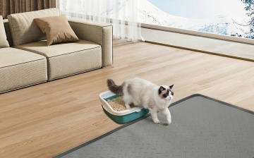 以图中的猫餐垫为元素,硅胶垫,易清洁防溢出防水防滑,设计4张跟猫餐垫有关的广告图,西班牙语,比例 「1:1」