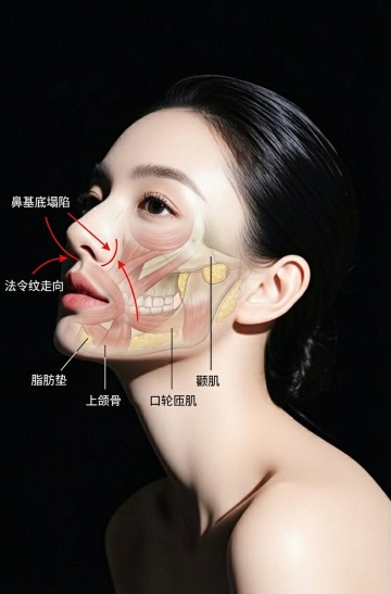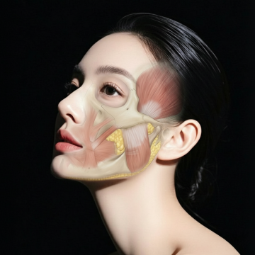 侧脸向上扬起的女性,双眼轻闭,深棕色头发优雅挽成低发髻,面部覆盖着由发光线条构成的网格,网格节点处有闪烁的白色光点,肌肤呈现出极致细腻、光滑、通透的质感,整体画面采用纯净的白色背景,光线柔和均匀地洒在人物轮廓上,营造出科技感与自然美的完美融合,突出皮肤的健康光泽与精致纹理,氛围宁静、高端且富有未来感。