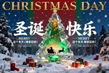 3D立体圣诞树融合鎏金文字与金属质感,重拟物风格呈现喜庆氛围,节日元素层层叠现,传递浓厚圣诞祝福。