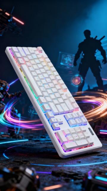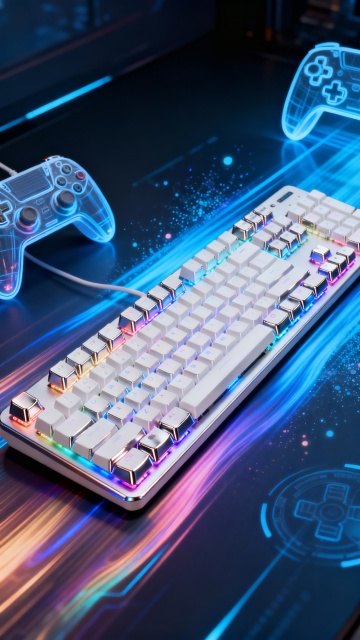 一张现代科技感十足的笔记本电脑产品宣传海报,采用高端电子产品广告的摄影风格,主色调为深邃的蓝色与科技银灰色,搭配明亮的白色背景。画面中央是一台打开的游戏本电脑,机身线条硬朗,金属质感强烈,屏幕上显示着一个由蓝色光效构成的锐利三角形标志,内部隐约可见动态的科技纹理。光线从上方以45度角柔和照射,在电脑边缘形成明显的高光,机身下方的白色平面上有清晰的倒影,倒影中蓝色光效部分呈现出轻微的拉伸变形。整体构图采用对称式布局,电脑位于画面正中央,背景为纯粹的白色,无其他装饰元素,营造出简洁、专业、未来感的氛围,视觉层级清晰,主体突出,信息传达直接高效,符合高端科技产品面向年轻专业用户和游戏玩家的定位。