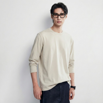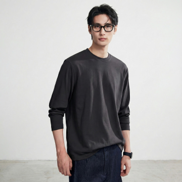 把白底图的衣服穿到模特身上 场景:灰色地面与白色背景,光线自然,背景简洁 画质要求:写实,8k,高细节,对焦清晰,光线自然,无变形