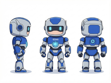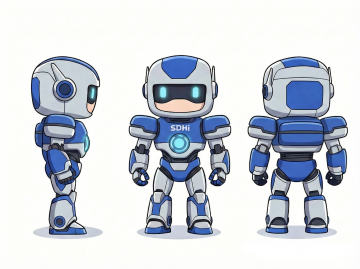 软3D风格的未来感机器人,融合金属风与毛发生长设计,霓虹灯蓝光点缀,拟人化卡通造型,科技与可爱并存,节日氛围浓厚。