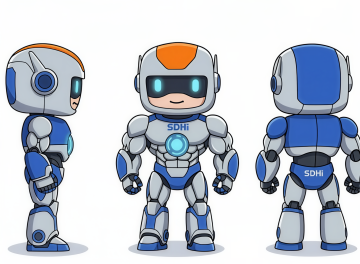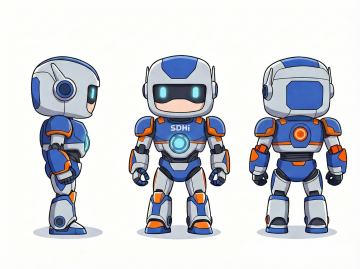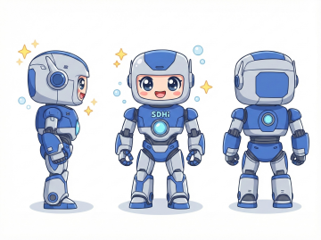 整体造型圆润亲和,以蓝色为主色调,胸前有十字医疗标志,充满温暖治愈感。