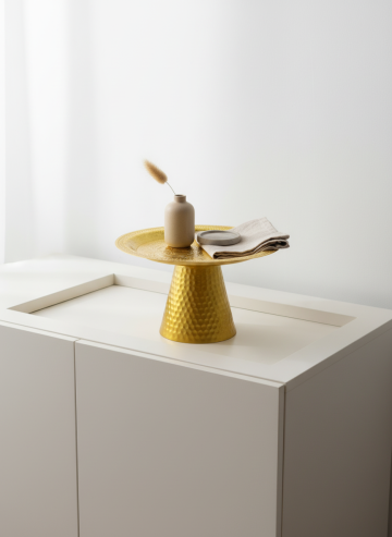 把托盘放置在浅色系白色柜子上面
