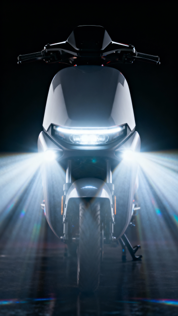 在充满神秘氛围的工业风格车库或夜间城市街道场景中,一辆鲜红色流线型运动摩托车占据画面核心位置,车身设计充满力量感与速度感,细节精致,车头大灯锐利明亮并发出耀眼光芒,轮胎宽大且胎纹清晰,停放在湿润反光的地面上,地面有水渍与油光,映射出摩托车的倒影与周围的光线。背景弥漫着浓厚的白色烟雾与朦胧水汽,光线从烟雾中穿透,形成强烈的光束与光影对比,整体画面采用暗色调与高对比度,营造出酷炫、动感、充满张力的氛围,具有电影级的视觉效果和细腻的质感表现,突出摩托车的科技感与力量感。