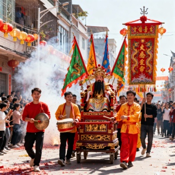 工笔风与刺绣风融合的京剧脸谱墙,以浮雕质感呈现民族与古典韵味,红金蓝三色交织,喜庆热烈,展现中式传统艺术之美。