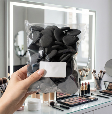 现代感与清新感交织,轻拟物风玻璃瓶身搭配极简主义陈列,柔和色调营造舒适氛围,实景感妆台背景强化时尚质感。