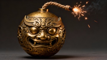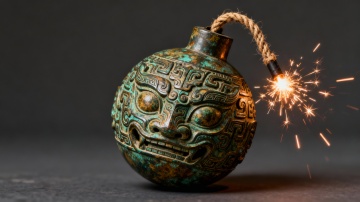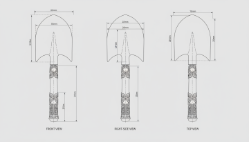 我需要一把古代洛阳铲,铲子造型以参考图为准,铲柄有青铜花纹装饰,完整洛阳铲造型,精致