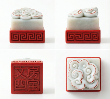 中式建筑微缩插画徽章,融合复古描边与金属浮雕工艺,喜庆色彩搭配祥云、花鸟元素,展现浓厚民族风情与节日氛围。