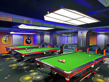 低角度仰拍,极简主义风格客厅室内设计,以冷灰色和深炭黑为主色调,搭配哑光黑色金属框架地板,蓝紫色调的LED光源从右侧几何切割造型的嵌入式灯带均匀投射,营造冷静克制的氛围。房间中央是一个悬浮式深灰色模块组合沙发,沙发上放置两个荧光蓝几何形状靠垫,沙发前铺着高反光黑色大理石纹地毯,地毯上摆放着一个不规则多面体透明玻璃茶几,茶几上有一个棱角分明的金属材质花瓶,插着几支干枯的黑色树枝。沙发左侧靠墙处有一盆叶片尖锐的黑色系观叶植物,种植在六边形混凝土花盆中。沙发上方的墙壁上悬挂着一幅纯黑色极简主义画作,画框为隐形嵌入式设计。天花板上悬挂着一个由多个黑色金属圆环组成的解构主义吊灯。整体空间布局采用悬浮式设计,线条凌厉分明,家具造型极具未来感,材质以金属、玻璃和混凝土为主,光影对比强烈,呈现出冷峻、理性、前卫的居家氛围。